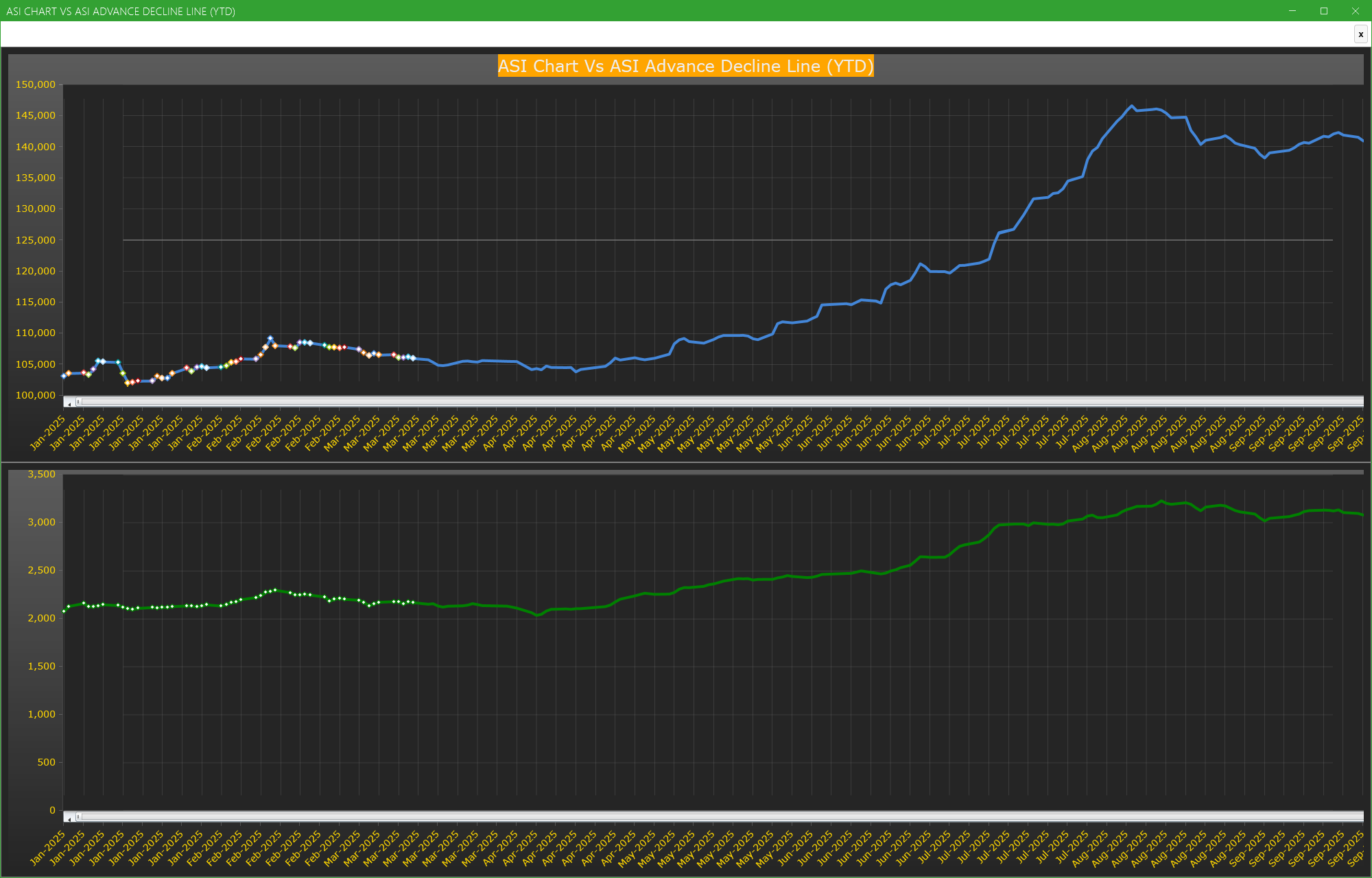 Chart Of The Day - ASI Chart Vs ASI Advance Decline Line (YTD) (30-Sep-2025 15:06:58.117)