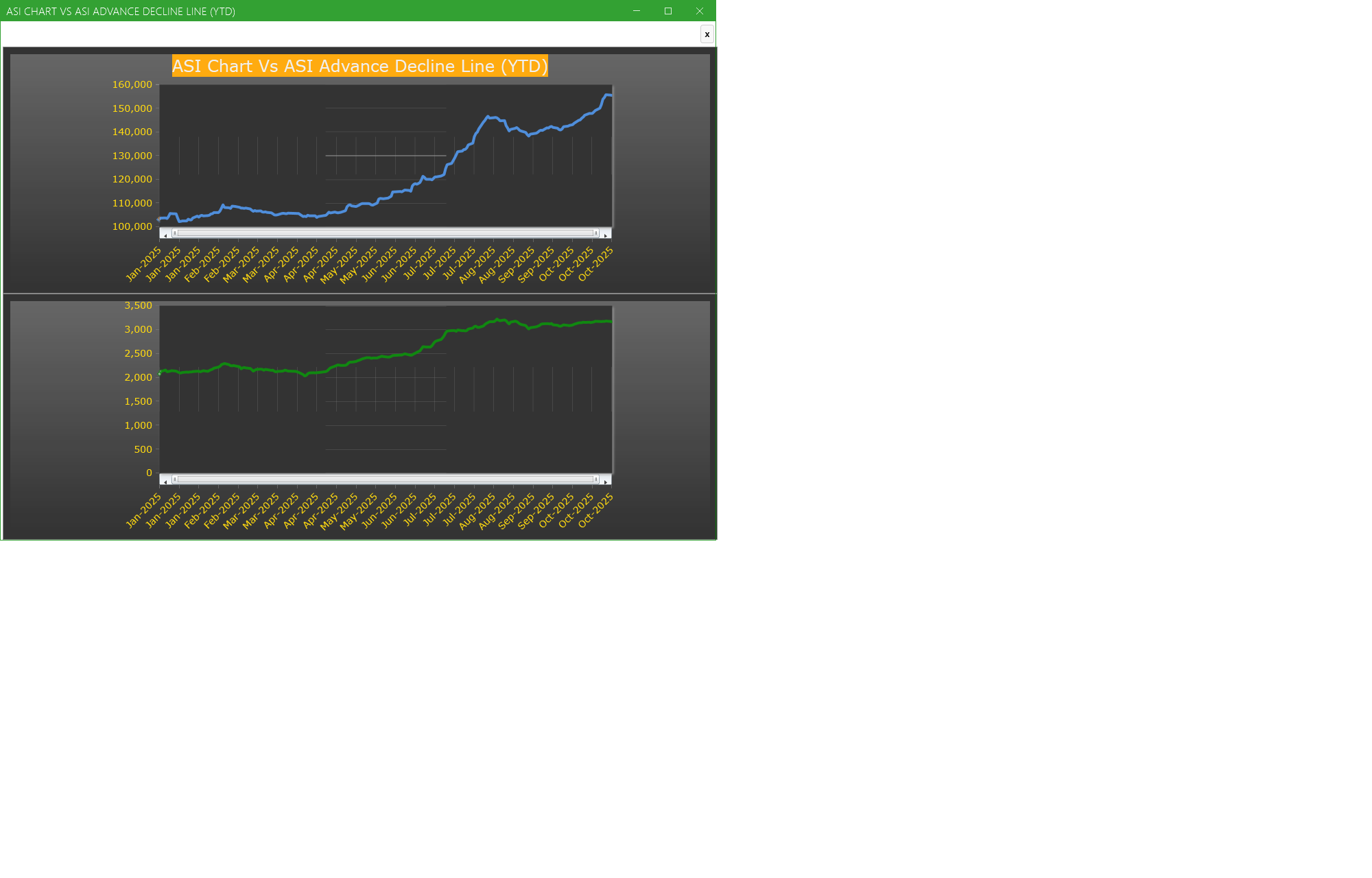 Chart Of The Day - ASI Chart Vs ASI Advance Decline Line (YTD) (29-Oct-2025 15:07:15.757) | InfoWARE Finance