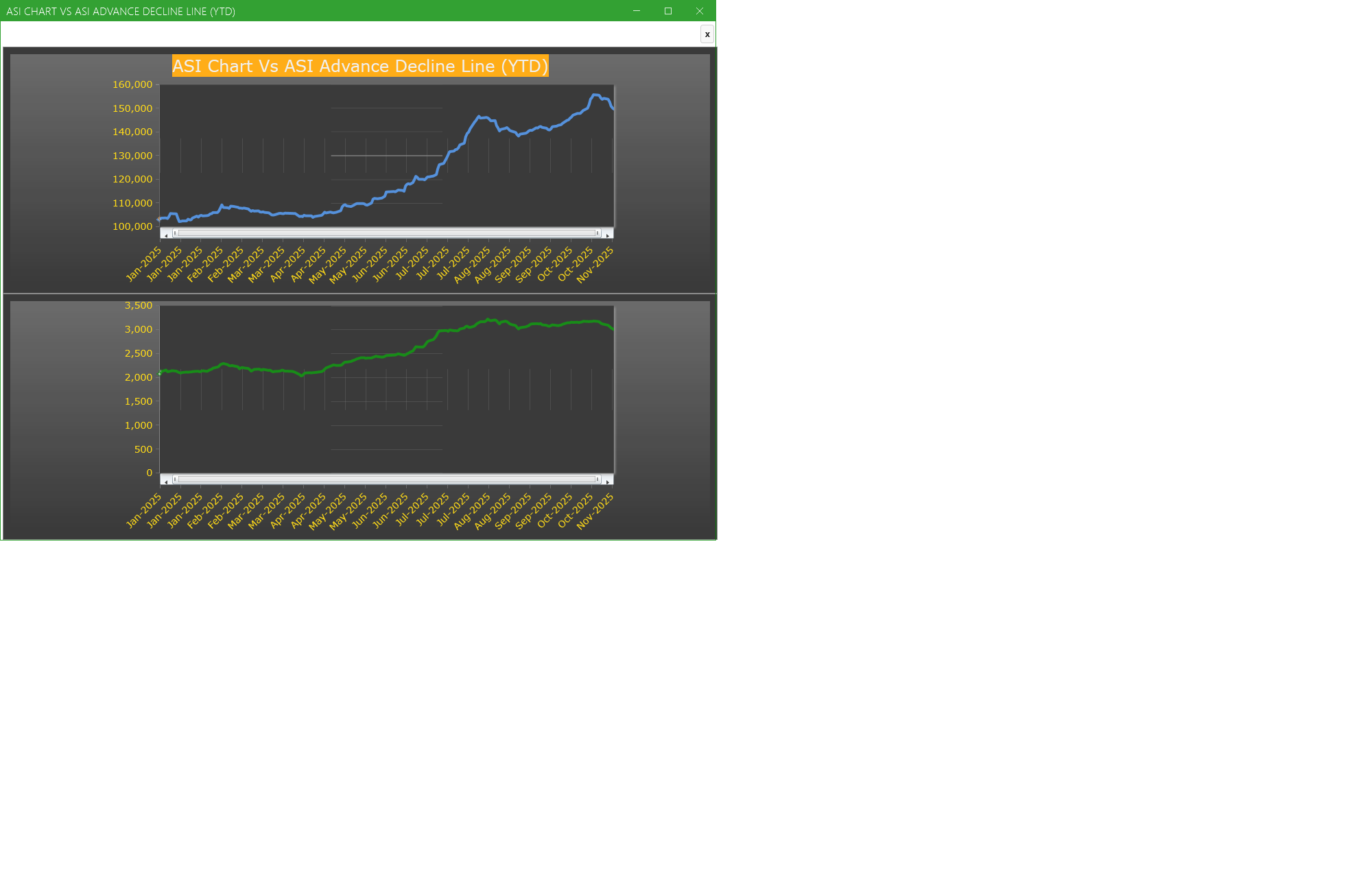 Chart Of The Day - ASI Chart Vs ASI Advance Decline Line (YTD) (06-Nov-2025 15:08:19.029)