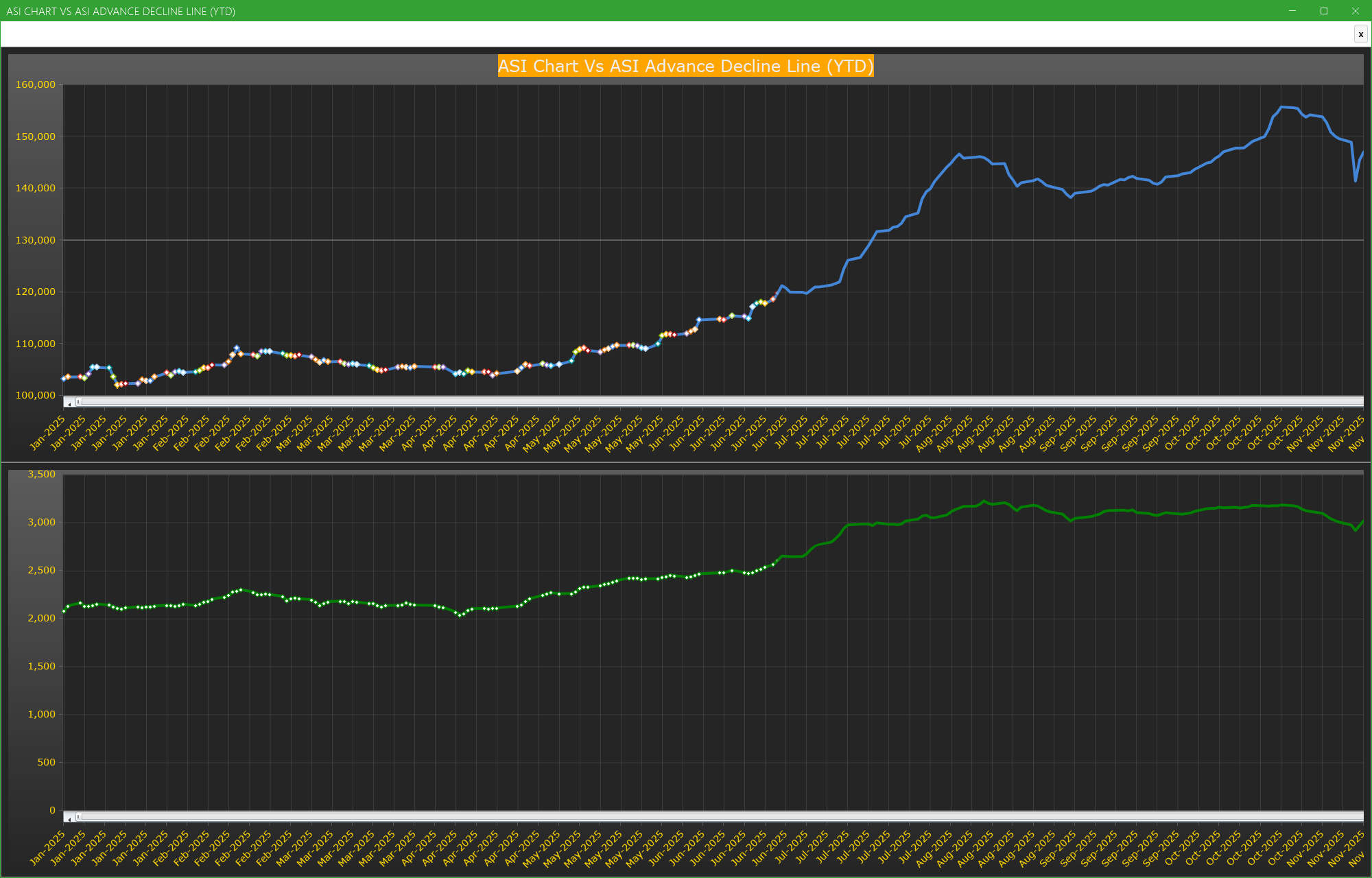 Chart Of The Day - ASI Chart Vs ASI Advance Decline Line (YTD) (20-Nov-2025 15:11:12.969)