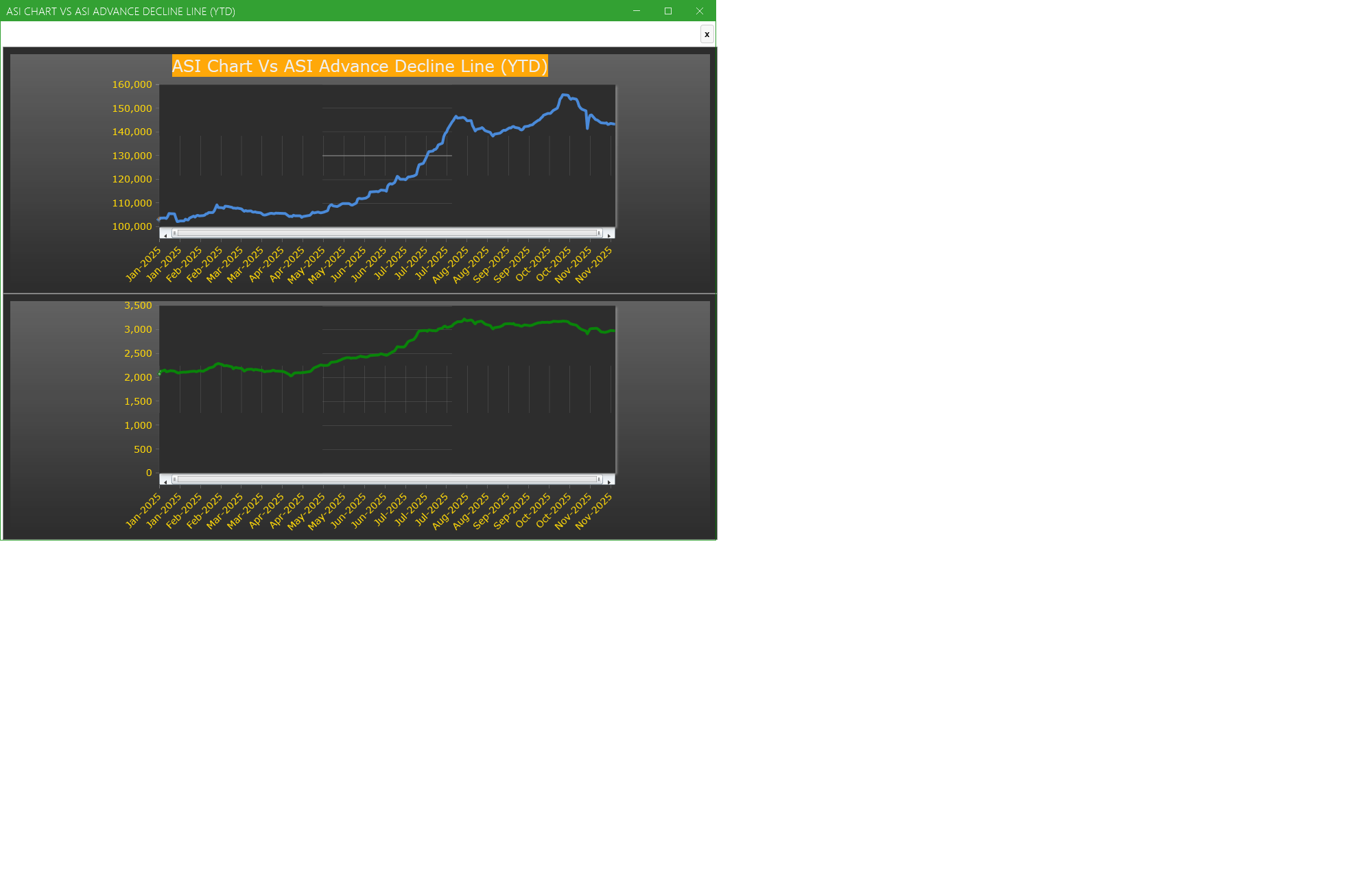 Chart Of The Day - ASI Chart Vs ASI Advance Decline Line (YTD) (28-Nov-2025 15:06:42.196)